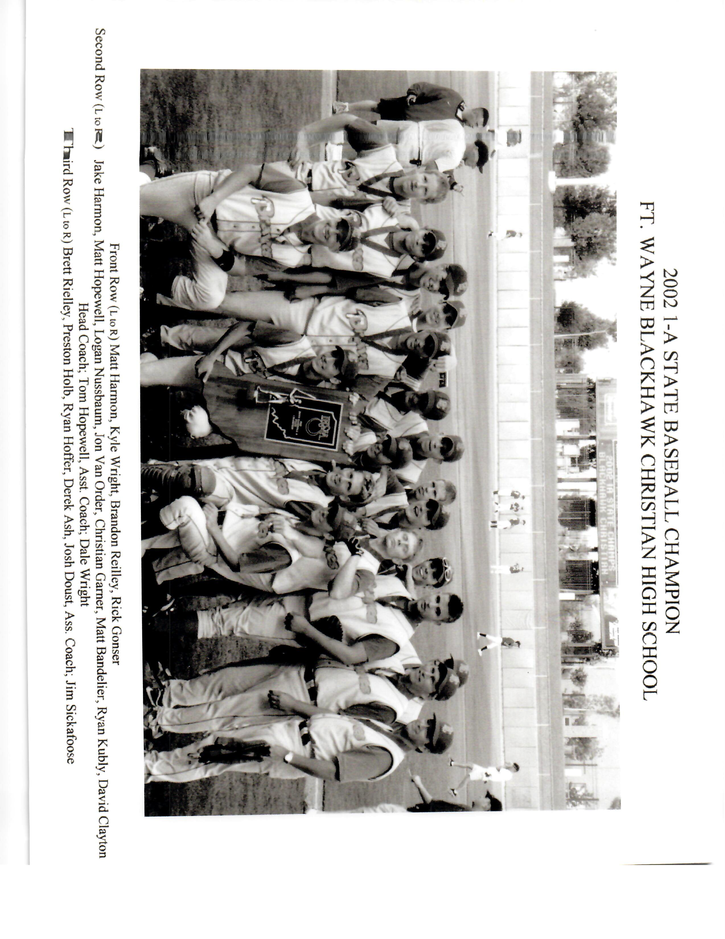 NE Indiana IHSAA State Champions 2002 Blackhawk Christian Braves Image 6 of 17 IHSAA Class A State Champions